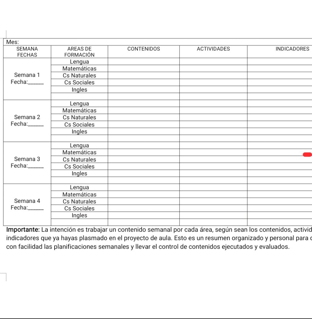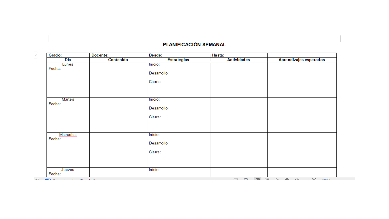 FORMATO DE PLANIFICACIÓN SEMANAL